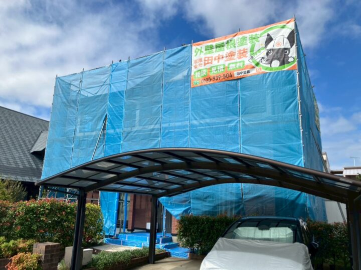 塗装工事を行う前にする大事な工程となります。足場設置後、塗装工事を行っていきます。工事終了後、足場を解体します。