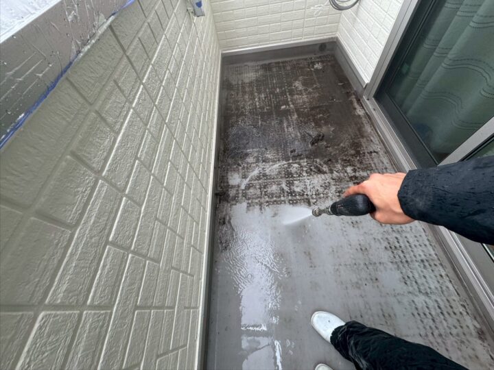 ベランダの高圧洗浄です。