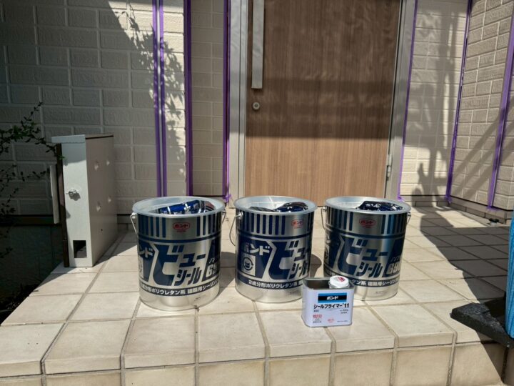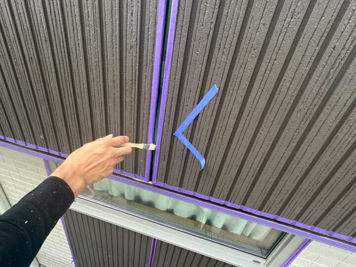 古いシーリングを撤去後、プライマー塗布を行密着度を向上させるため行っていきます。