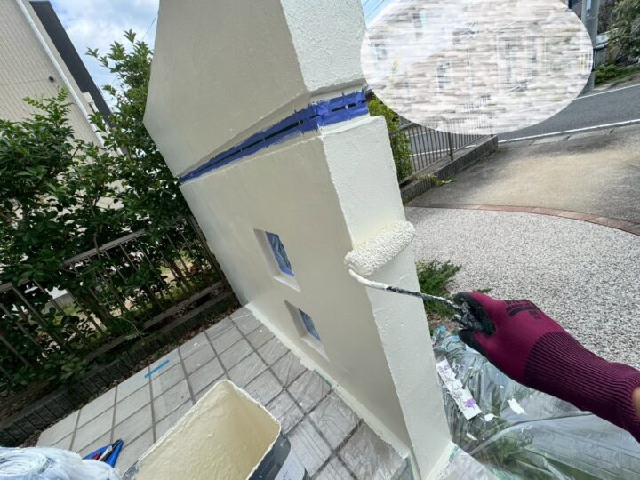 下塗り・中塗り・上塗りの三回塗りを行って外壁塗装の完了となります。