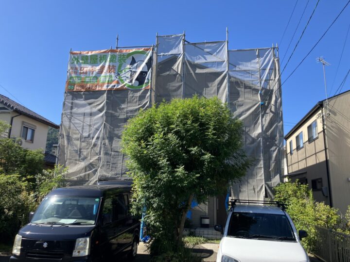 塗装工事を行う前にする大事な工程となります。足場設置後、塗装工事を行っていきます。工事終了後、足場を解体します。